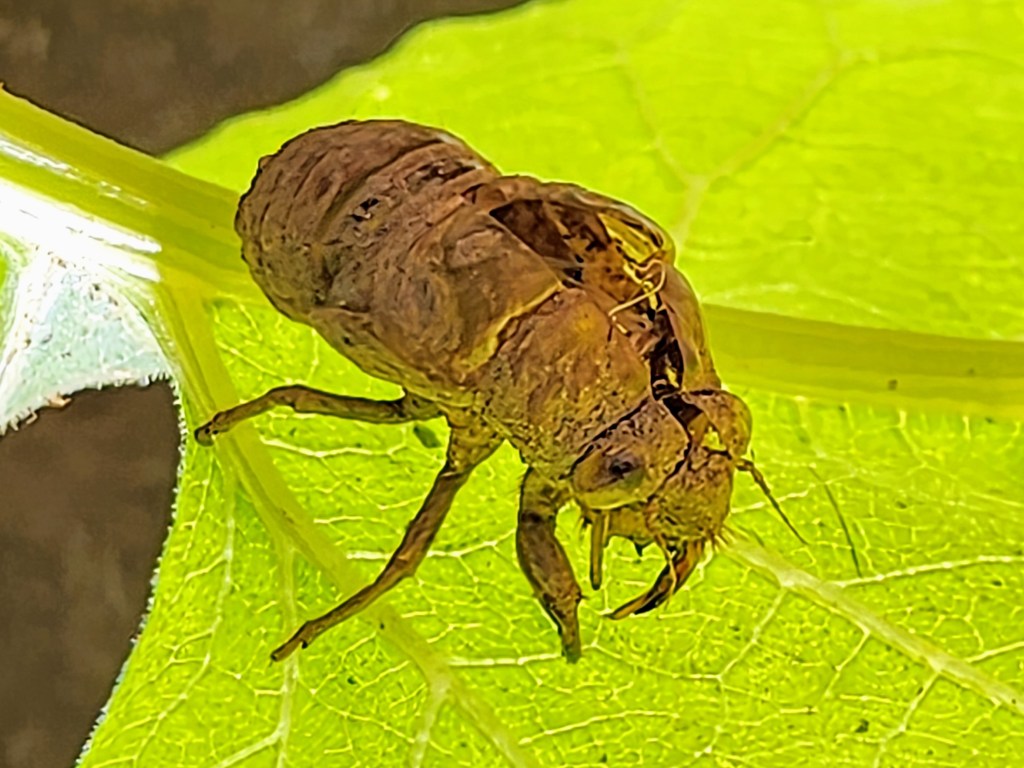 She spends the majority of her life underground. Up to 12-17 years for some. A tiny little worm feeding on root sap. Happily slithering in the warm dark belly of Mother Earth. Safe, comfortable and content. Then the day comes when she yearns for something different. Something in her DNA tells her there’s more to life out there. Beyond the comfort of the darkness, there’s a whole new world of trees, light, other creatures and so much more beyond the imagination. So she leisurely crawls out, following the path from root to surface up the trunk to branch. “Whooaaa! It’s so bright here! It’s like a different universe” she thinks. There’s so much more to discover. She wants wings. That old suit doesn’t fit anymore. Slowly but surely, for hours, she strenuously crawls out of the old shell. Completely transformed from an ugly crawler to a beautiful green fairy. Translucent green wings start to unfold from that clumsy old crusty shell. She sits there on top of the open casket that is her old suit. I imagine some apprehension and hesitation going through her mind, yet it’s impossible to go back. The only way is forward.